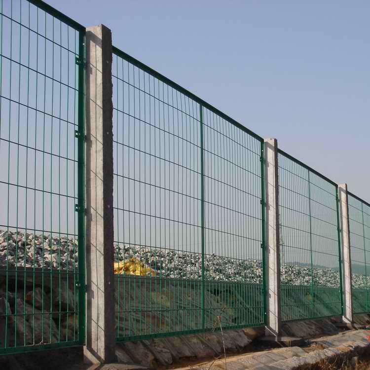 鐵路防護欄主要用于鐵路封閉、高速公路隔離柵、開發區圍界、場區圍網,采用立柱采用混凝土洗筑件,工程造價低,強度高,整體穩定好,彩色塑層具有良好的抗腐蝕和裝飾效果,使鐵路護欄整體和諧、美觀。