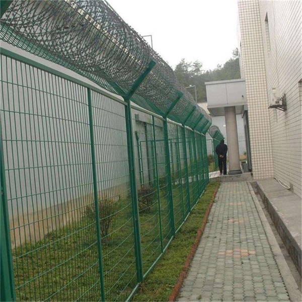 看守所焊接鋼網墻的安裝位置是建于看守所監區的內外墻地面及高墻之上,網墻內側或頂部加裝蛇腹形刀刺網產品,具有結構新穎、堅固緊密、網面平整、網孔均勻、刀鋒銳利、防攀爬、耐腐蝕性強等特點,形成一道高不可攀、難以逾越的隔離障礙。配合高壓打擊電網各種監控報警設備確??词厮O區安全萬無一失。