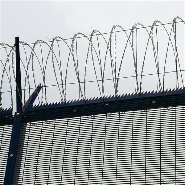 5.蛇腹式刀刺網每圈刀刺間隔100mm,每米刀刺不少于10圈。刀刺風安裝固定卡扣整體調正,使刀刺網不出現擰轉情況 刀刺刺圈分布均勻,每隔20米與拉絲固定:分段連接處需將兩端刀刺網做連接固定,刀刺網固定點需緊鎖不得出現松動、脫落現象:刀刺網安裝與隔離網平行,上下左右均成直線延伸,轉角處需做加密加固處理。