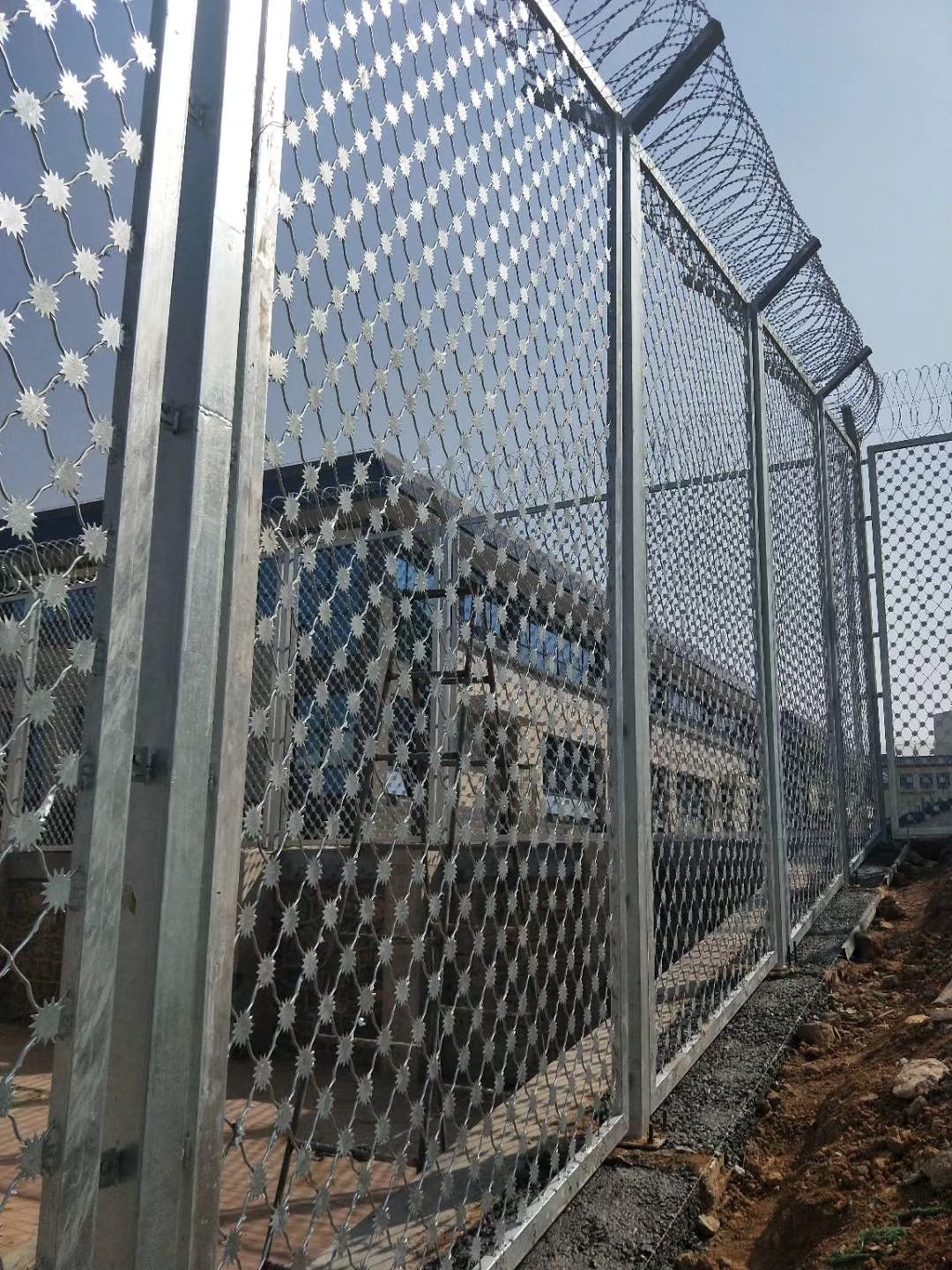 監(jiān)獄目前來說防護(hù)等級最高的一種防護(hù)隔離網(wǎng)形式,也就是梅花刺網(wǎng)。