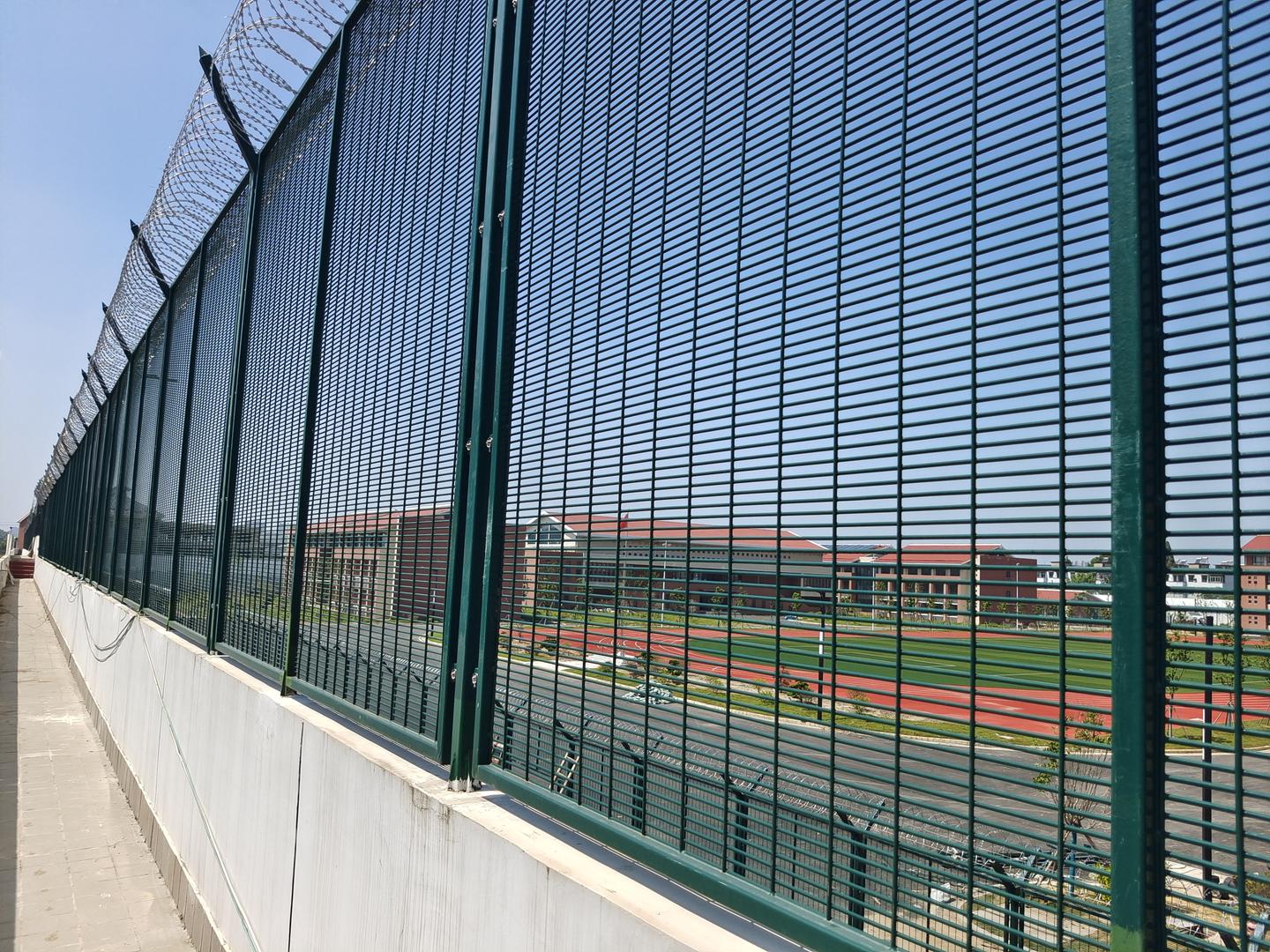 358密紋護欄網在安裝過程中,358密紋護欄網應沿著地形安裝。當有顛簸時,需要進行地面整理以獲得整潔的外觀。在低洼地區,當監獄鐵絲網的縱向輪廓突然變化且無法維持所需的地面高度時,可以使用更長的支柱,拉伸358密紋護欄網,使它們之間的垂直間距等于或小于200MM。上方再加上刀刺網就形成了一個堅固安全的空間