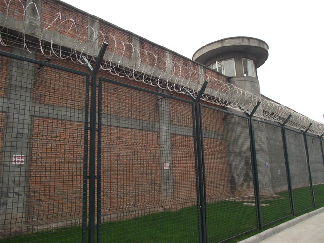 監獄防爬護欄網是監獄中常見的安全防護措施,對防止犯人逃脫起到了重要的作用。其頂部大多都加裝刀刺網,使其安全性能大大加強的同時也不會增加多少成本。加裝刀刺網之后的鋼網墻遠遠看上去令人心生畏懼,采用雙螺旋刀刺網500圈徑的進行卡扣安裝。光樣子就能使罪犯放棄越獄的想法,我公司生產的監獄鋼網墻便能起到如此效果。我們生產的監獄防爬護欄網都是采用優質的鍍鋅鋼絲焊接而成的,在對其表面進行浸塑處理或噴塑處理,一般是采用多的是上塑厚度可到0.8mm以上。防腐效果更出色。