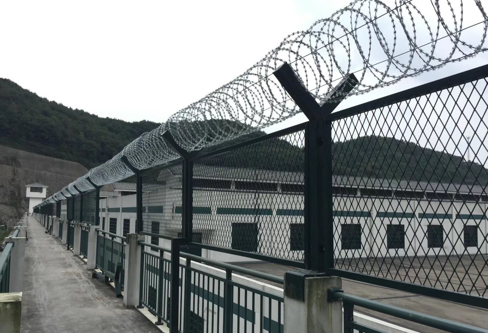 監獄鋼網墻是非常重要的監獄安全防護設施,由焊接鋼網加蛇腹形刀刺網組合而成。監獄鋼網墻具有結構新穎、堅固緊密、網面平整、網孔均勻、刀鋒銳利、防攀爬、防腐蝕性強等特點。建設于監獄的內外墻地面及高墻之上固定好,網墻內側或頂部加裝蛇腹形刀刺網,形成一道高不可攀、難以逾越的隔離障礙。配合高壓打擊電網、各種監控報警設備確保監獄安全。那么一般都用什么樣的規格尺寸呢?