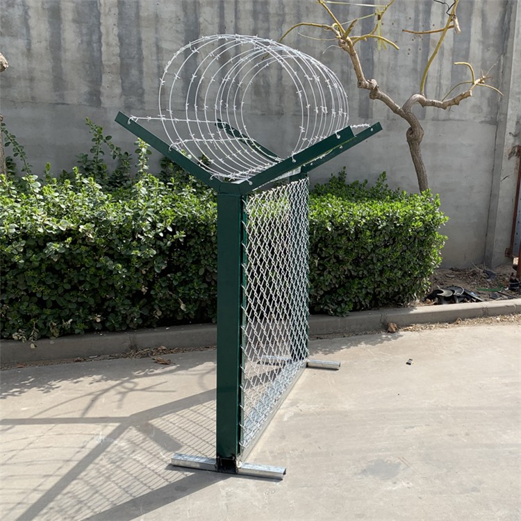 先來說一下我們機場勾花鋁包鋼網的基礎規格:由Y型燕尾立柱、鋁包鋼勾花網、鋁包鋼刺絲網組成鋁包鋼機場圍界具有獨具匠心的鋼紋線穿插式連接立柱和網片,在保證美觀大方的同時,又能夠承受20KN推力的鋁包鋼紋線使整體圍界足夠堅固。這也是現在越來越多人選擇機場做鋁包鋼的原因。鋁包鋼絲編織而成立柱中心距:3000mm。圍界高度:2000-3000mm。絲徑:3.0、3.2mm,網孔尺寸:60*60mm,50*50mm。立柱:75*75*2mm,刺絲網:刺絲3.0mm 滾外直徑:500mm立柱及連接防腐熱鍍鋅外層噴塑。